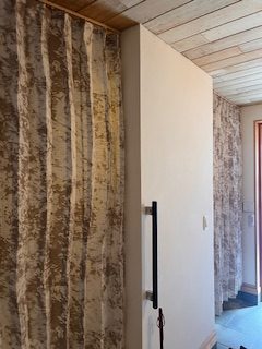 ブログ 知り合いの方が、10年ぶりにカーテンを変えられました! 2025.12.25 Tweet 10年前に家を建て替えられて、今回障子紙とカーテンを変えられる事になりました。建物は奥様が拘られた天井が桐の木で、漆喰壁、無垢のフローリングそして仕事を始められたときに思い切って買われたペルシャ絨毯に囲まれた和風建築の素晴らしい物でした。10年経ったので新たにカーテンと障子紙をリニュアルしたいと依頼を受けいくつかご提案させて頂いたのですが、最終的にスイスの最高級カーテン、フィスバの物を採用して下さいました。 ビフォアの写真です。 玄関は、スイスのデザイナーさんの新作で最も人気のある作品で「石」をモチーフに描かれました。 これはかなりエスニック柄の物ですが、カエルやお猿さん等が描かれていて、奥様より田中一村の絵のようだとお褒めの言葉を頂きました。色がシックな緑なので素晴らしい庭ととてもマッチしています。 寝室のシェードです。最初、シングルかダブルか迷われて、結局ドレープを無地の遮光1級にしたので、昼間はレースだけ閉めておくとのことで柄物にしてとても気に入って下さいました。とても愛着を持って住まわれていらっしゃる空間にカーテンを変えるだけで又新鮮な想いで過ごされることを大変嬉しく思いました。住まいとはそういった想いの中にいることで、そのお手伝いが出来ますインテリアコーディデーターの仕事を32年間させて頂いていることに改めて感謝の気持ちで一杯になりました。 Category:実績紹介 BACK