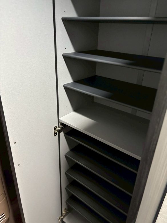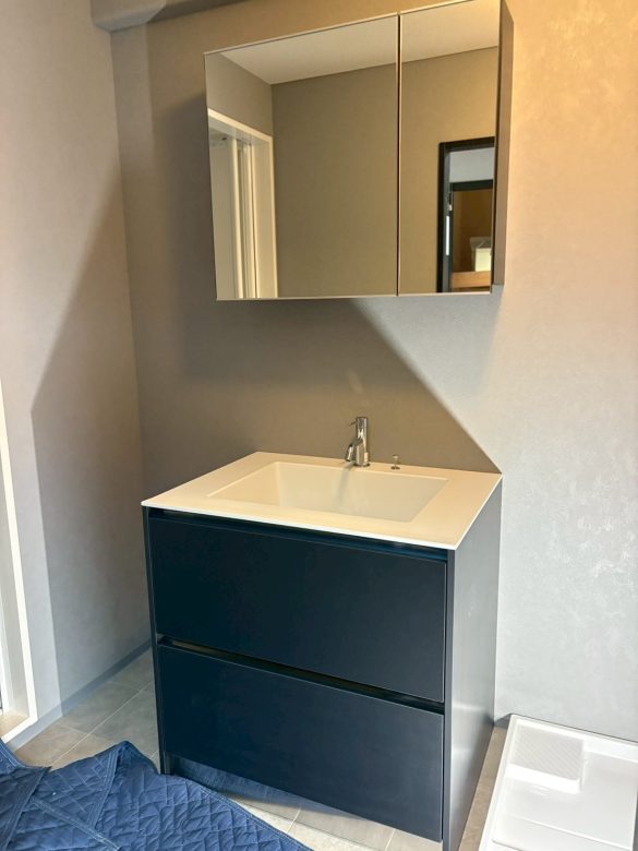 ブログ 倉敷のワンルームマンション 2025.12.25 Tweet 倉敷の古いワンルームマンションのリノベーションのお手伝いをさせて頂きました。医大生の息子さんのために買われたマンションのリノベです。若い男子好みのインテリアに仕上げました。ビフォアは当時流行っていたライオンズマンションのインテリアで框ドアなどが今風ではないため全部新しい物に変え、キッチンは予算の関係で、上からフィルムを貼ってイメージを変えました。 ビフォアの写真です。一番気になったところが洗面です。 ユニットバスに付属している部分なので 朝顔を洗うときに床が塗れているのを皆さん嫌がられます。独立した洗面台を置くには洗面所のスペースが狭すぎますので 思い切ってお風呂をシャワーブースに変えました。 床を今風に少しアンティークなイメージの物を選びました。ラスティック感が出ています。 洗面、キッチントイレのイメージです。ご予算上、トイレは便座だけ多機能便座に変えました。 土間はグレーのモルタル系にしてシューズクロークの棚板も黒にして貰い、結構意外とインテリアで大切な部分であるスイッチ、コンセントの色まで拘ります。 建具とシャワーブースです。全てモノトーンにしています。 引き渡し日に家具、家電も入れられてすっかり生活できるようになりました。息子さんも喜んで下さった様です。コーディネーター冥利に尽きます。(^^) Category:実績紹介 BACK NEXT