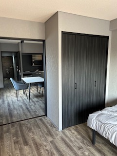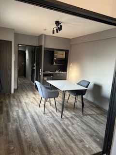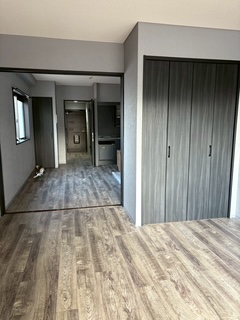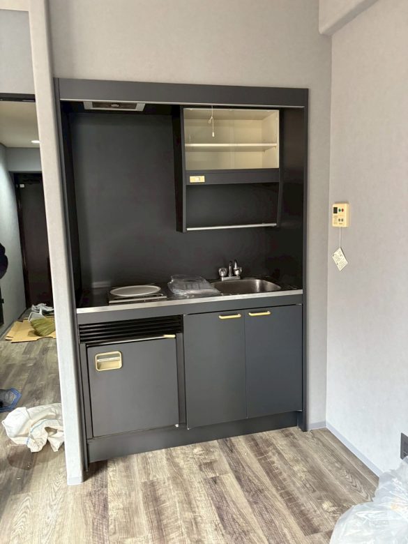 倉敷のワンルームマンション 2025.12.25 Tweet 倉敷の古いワンルームマンションのリノベーションのお手伝いをさせて頂きました。医大生の息子さんのために買われたマンションのリノベです。若い男子好みのインテリアに仕上げました。ビフォアは当時流行っていたライオンズマンションのインテリアで框ドアなどが今風ではないため全部新しい物に変え、キッチンは予算の関係で、上からフィルムを貼ってイメージを変えました。 ビフォアの写真です。一番気になったところが洗面です。 ユニットバスに付属している部分なので 朝顔を洗うときに床が塗れているのを皆さん嫌がられます。独立した洗面台を置くには洗面所のスペースが狭すぎますので 思い切ってお風呂をシャワーブースに変えました。 床を今風に少しアンティークなイメージの物を選びました。ラスティック感が出ています。 洗面、キッチントイレのイメージです。ご予算上、トイレは便座だけ多機能便座に変えました。 土間はグレーのモルタル系にしてシューズクロークの棚板も黒にして貰い、結構意外とインテリアで大切な部分であるスイッチ、コンセントの色まで拘ります。 建具とシャワーブースです。全てモノトーンにしています。 引き渡し日に家具、家電も入れられてすっかり生活できるようになりました。息子さんも喜んで下さった様です。コーディネーター冥利に尽きます。(^^) Category:実績紹介